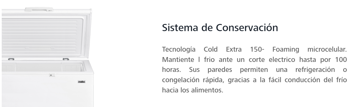 El Congelador Horizontal Mabe de 145 Litros es ideal para quienes buscan una solución compacta, práctica y eficiente para conservar alimentos congelados. Su tamaño permite ubicarlo fácilmente en hogares, departamentos o pequeños negocios, sin sacrificar rendimiento. Mabe ofrece un equipo confiable, resistente y de bajo consumo para el uso diario.