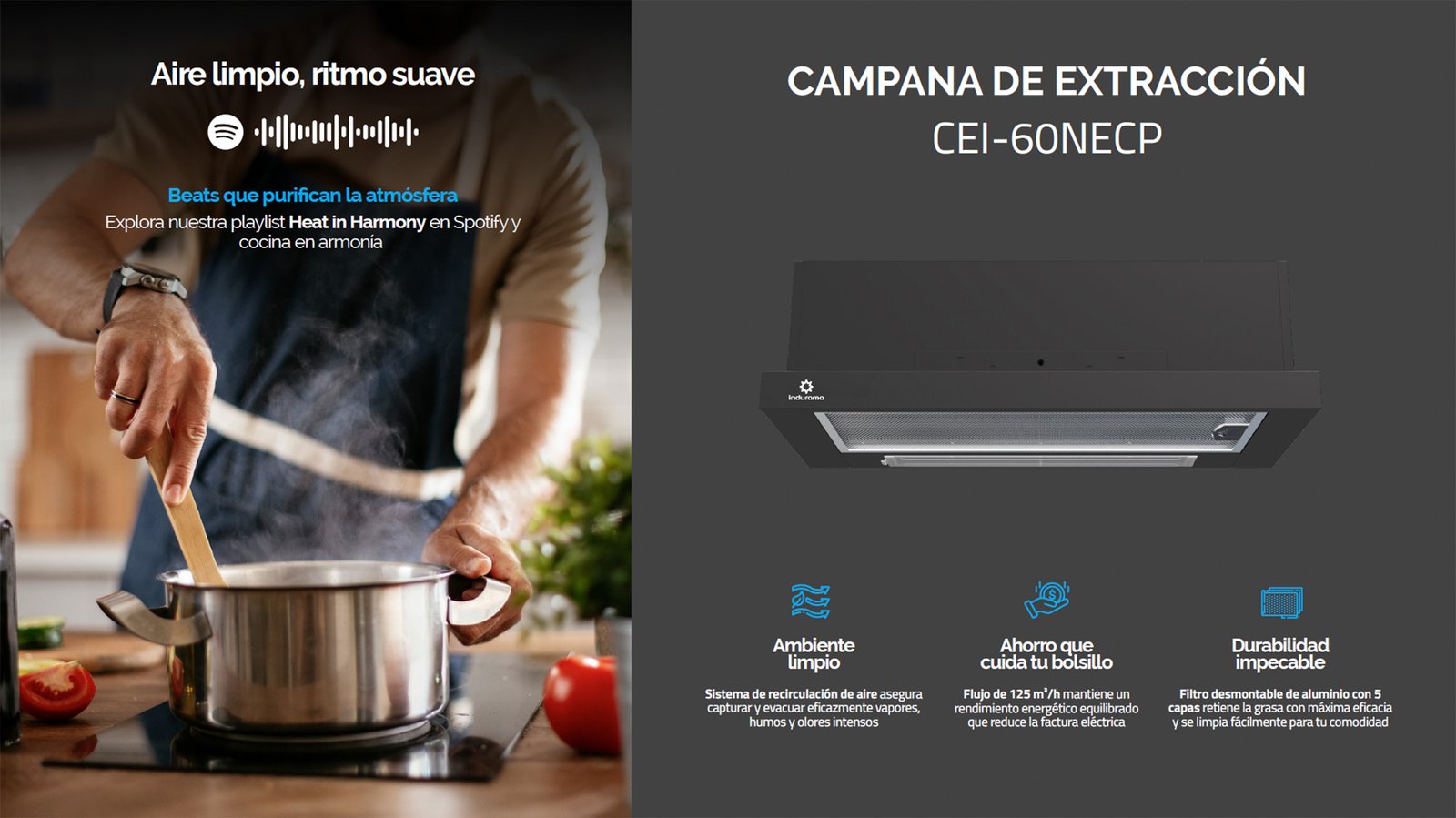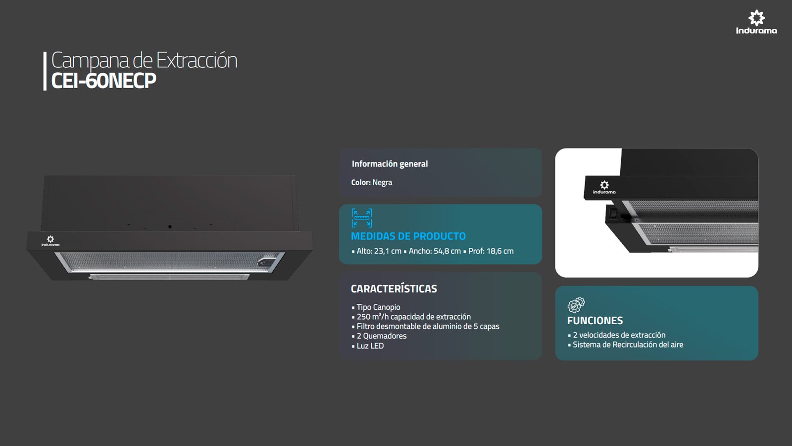 Campana Extractora CEI-60NECP Indurama | 60 cm color negra